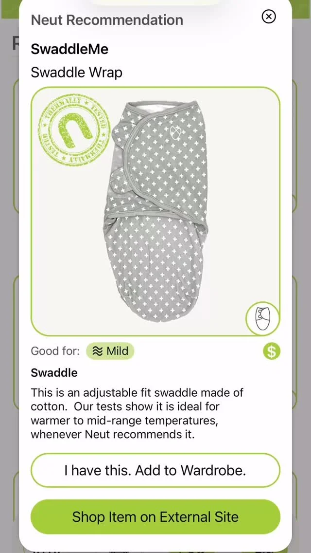 Before Neut, there was no good way for parents to assess the thermal properties of baby sleep clothes and create perfect outfit matches for the environment.